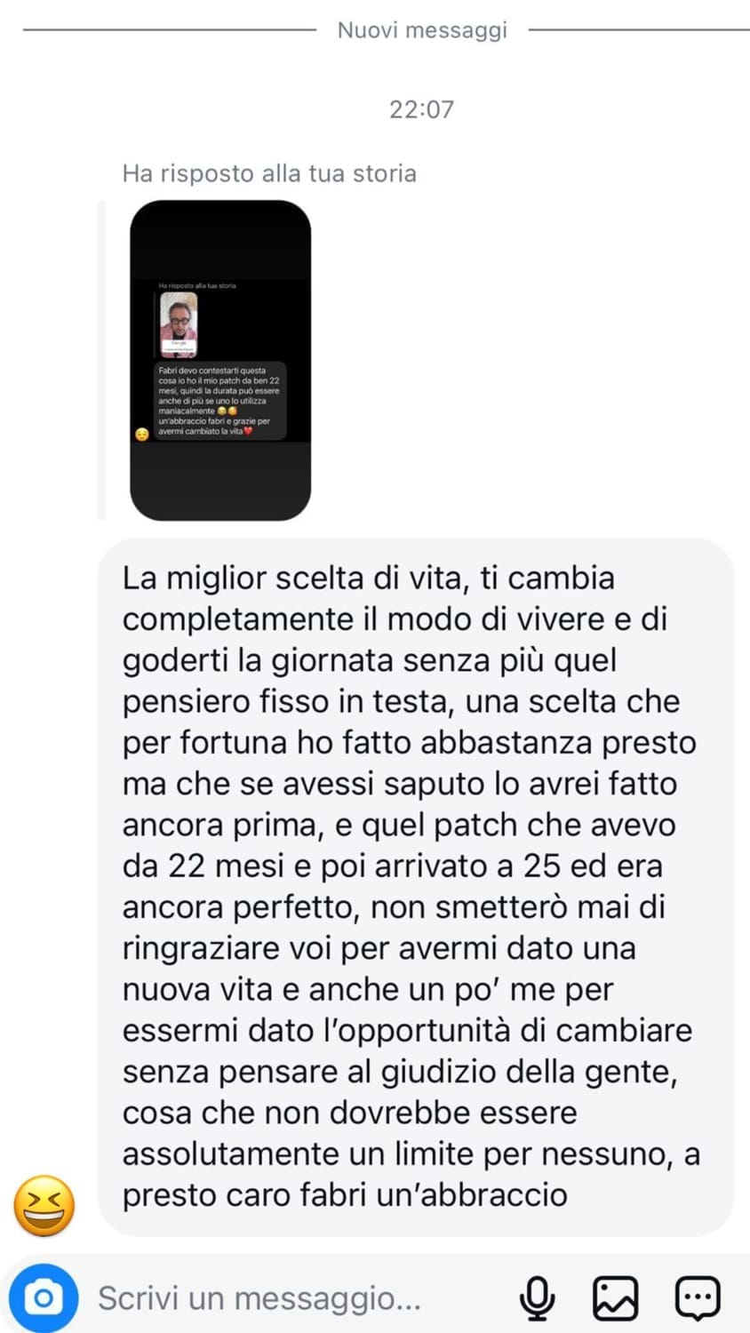 Non è un impegno all'acquisto, ma un'opportunità per conoscerci e scoprire se il patchcutaneo® è la soluzione giusta per te.