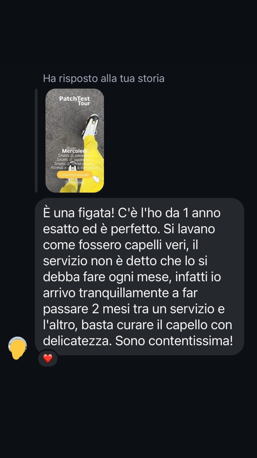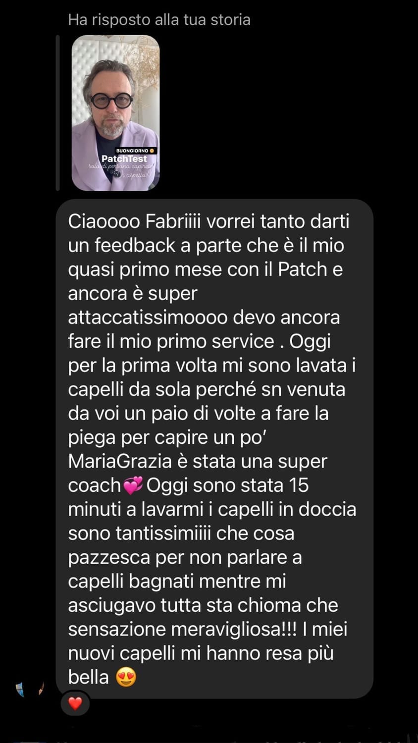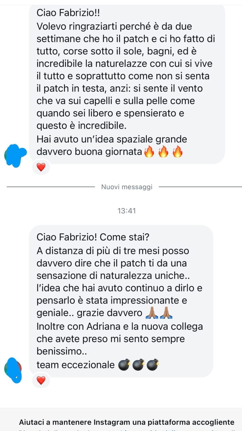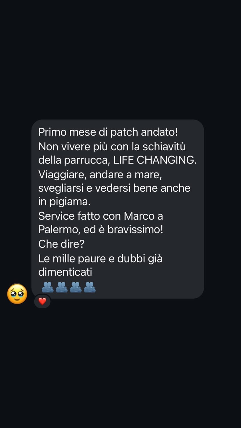Il patchcutaneo® è un marchio registrato e brevettato di Benessere Capelli. Tutte le immagini e le testimonianze sono autentiche e verificabili.