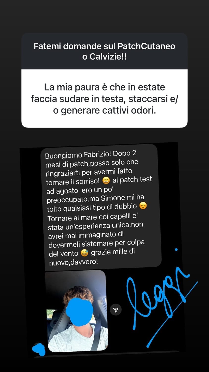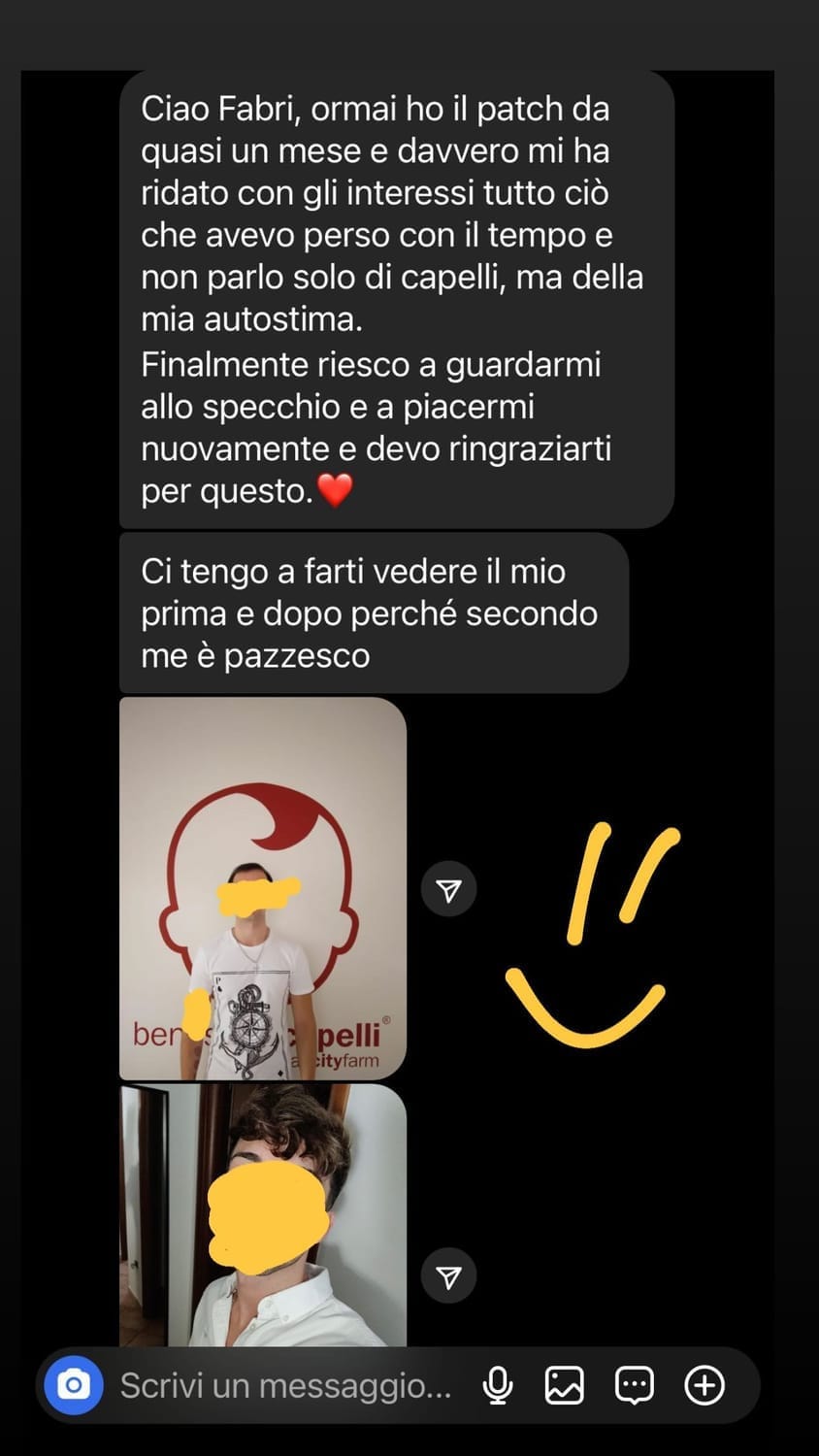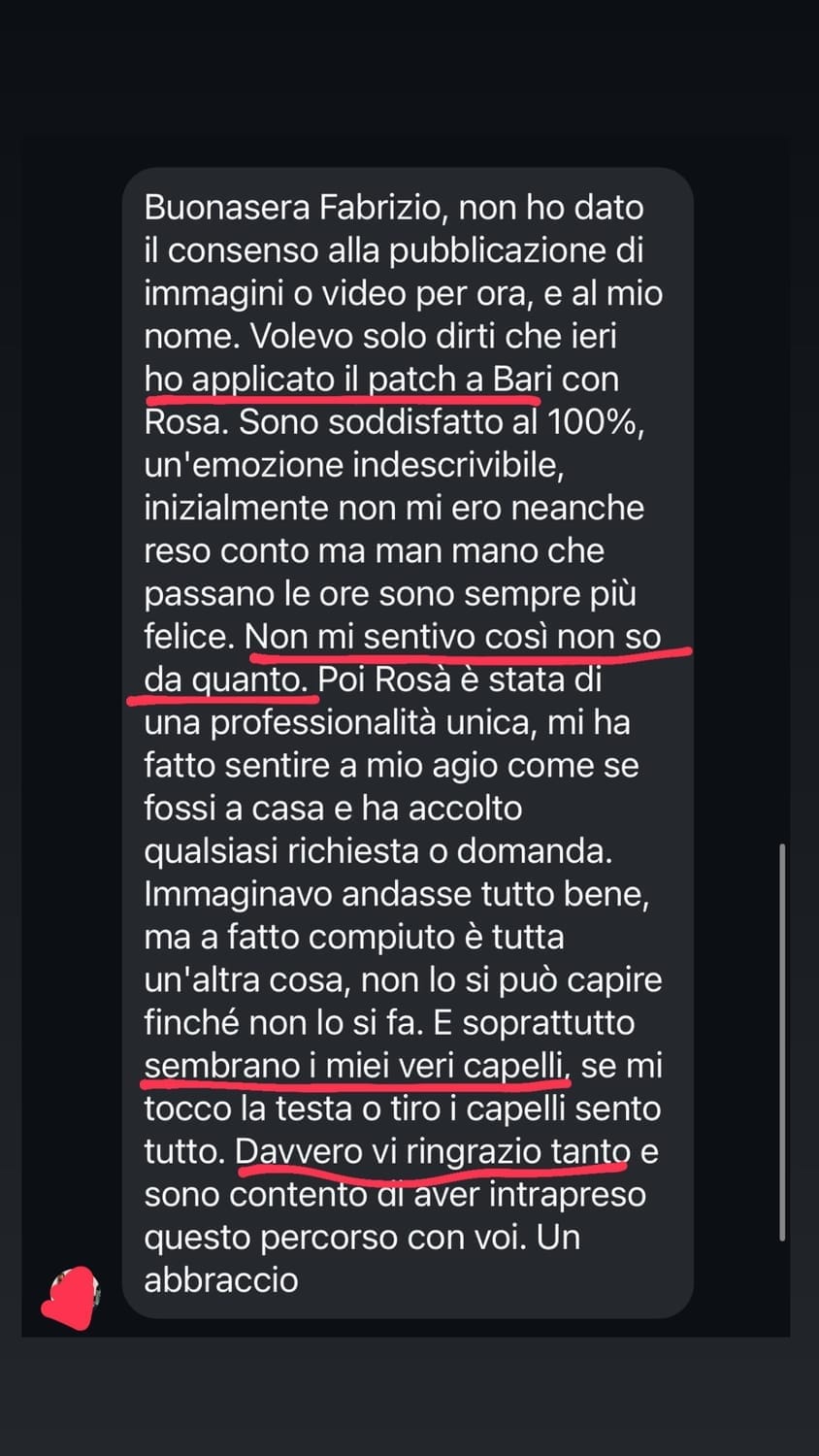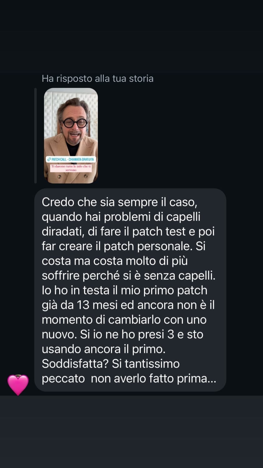 Il patchcutaneo® è un marchio registrato e brevettato di Benessere Capelli. Tutte le immagini e le testimonianze sono autentiche e verificabili.